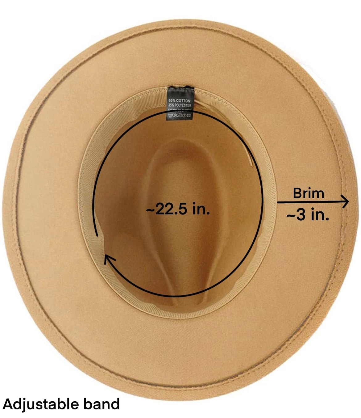 - One Size fits most adults (Approx. 22.5 inch circumference) -> Hat has adjustable band inside.